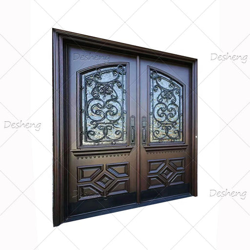 Luxury Exterior Double entrance Main Gate Double Security Door Wrought Iron Front Entry Door