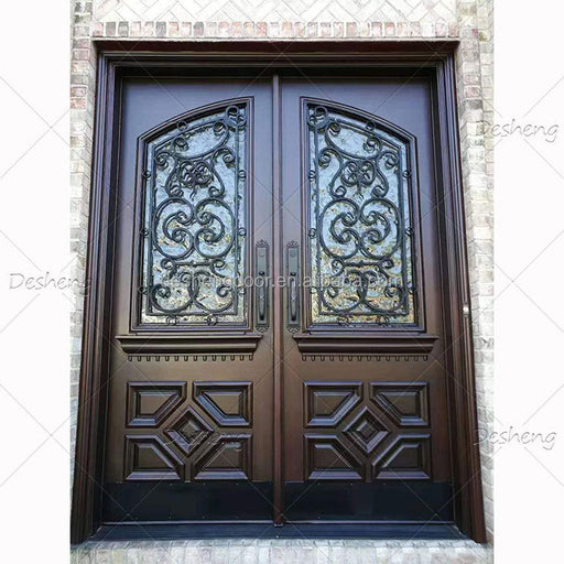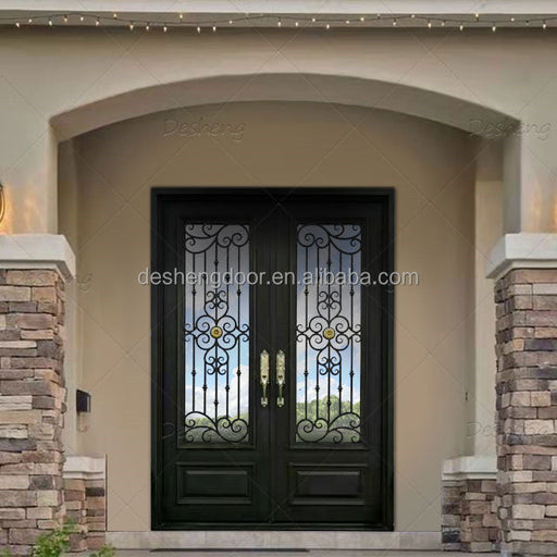 Luxury Exterior Main Entry Wrought Iron Door Iron Grill Window Double Main Security Exterior Iron French Doors