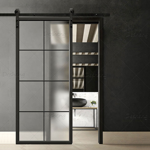 Manual Modern Interior Bedroom Hidden Track Mirrored Aluminum Alloy Tempered Glass Sliding Barn Door