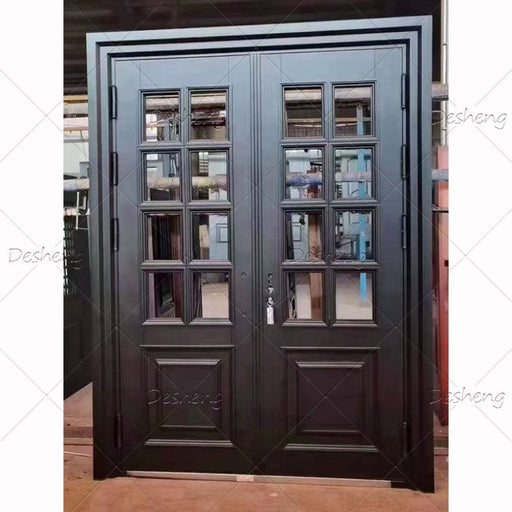 Modern Front Entrance Entry Patio Glass Glazing Steel Iron Door Exterior French Doors