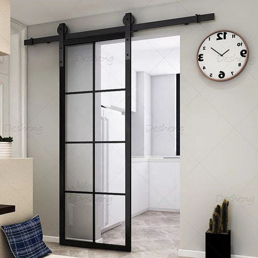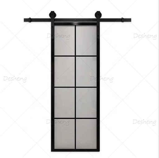 Modern Interior Bathrooms Doors Track Hardware Tempered Glass Glazing Aluminum Sliding Barn Door