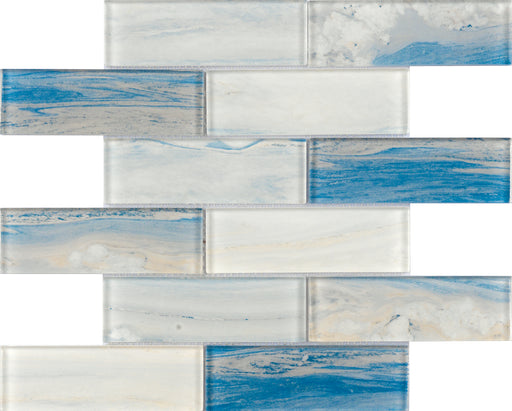 Direct supply White Blue Stone Strip Tile Mosaic Glass