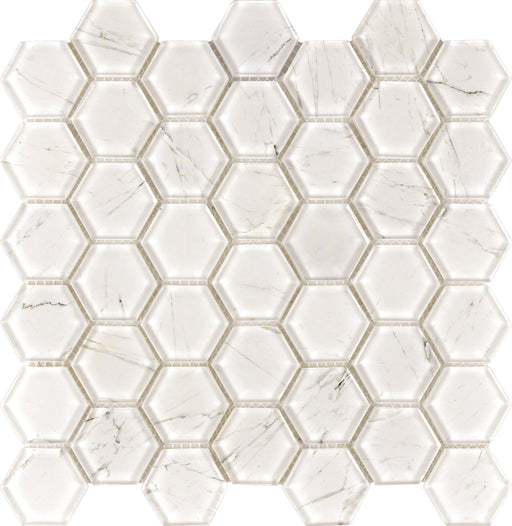 Classic Design White Hexagon Backsplash Marble Glass Mosaic Tiles