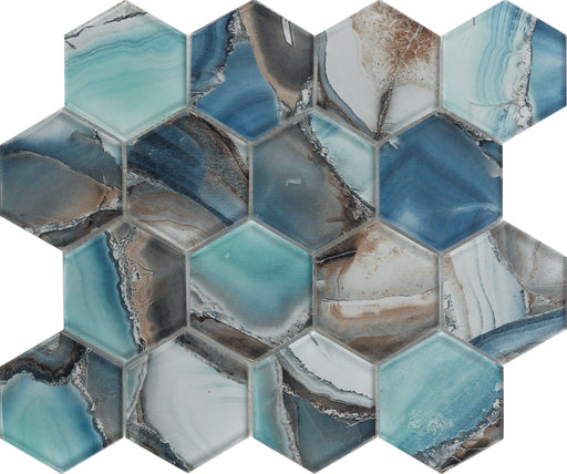 European And American Style Kitchen wall Blue Agate Hexagon Mosaic Glass
