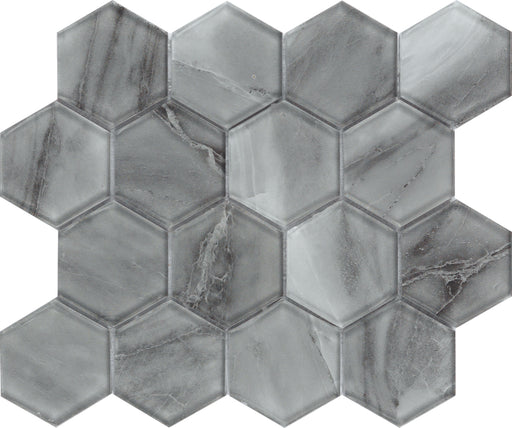 Classic Simplicity Silver Hexagon Marble Glass Mosaic Tiles