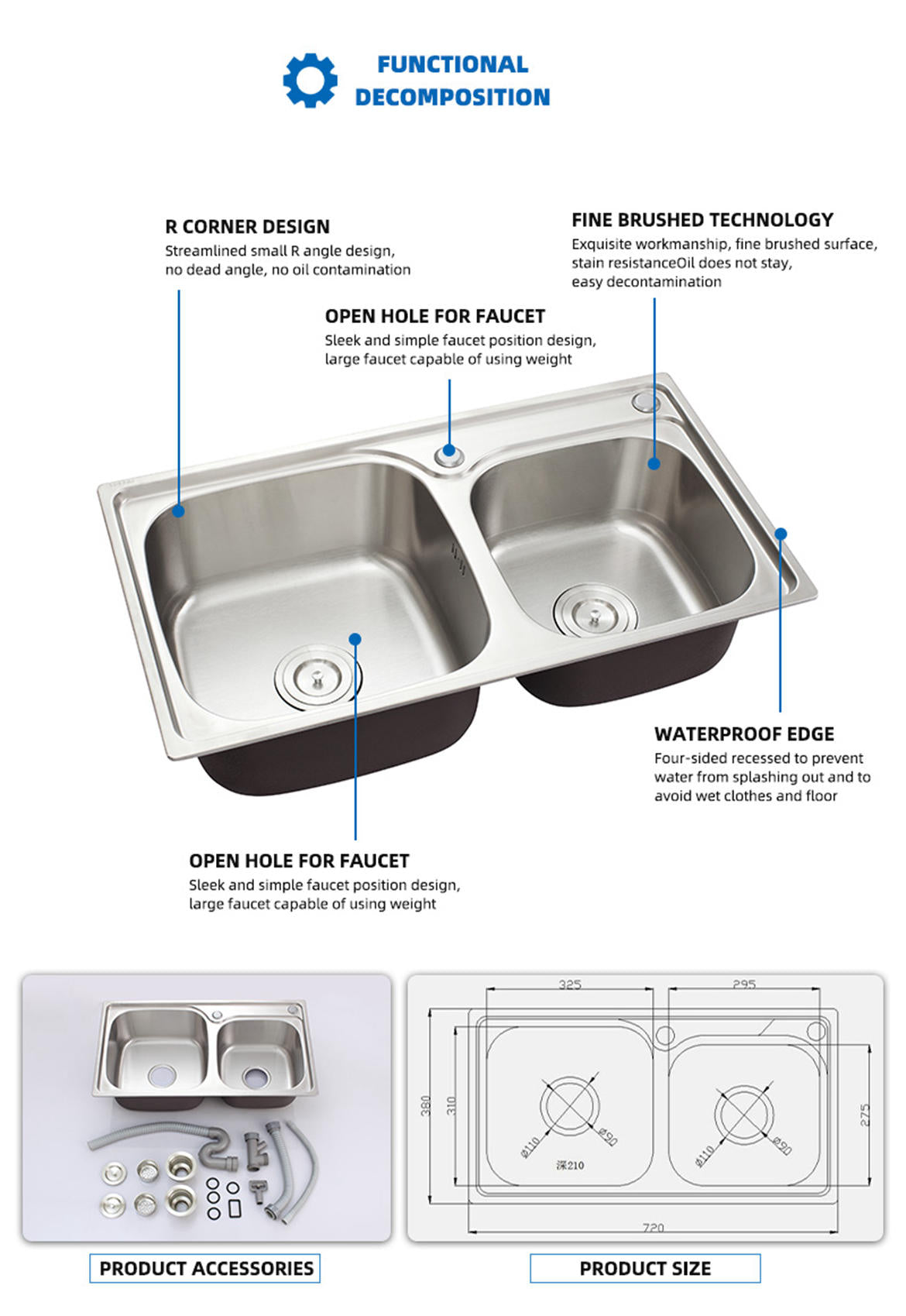 Double Capacity Standard Double Bowl Sink Topmount 304 Stainless steel Kitchen sink