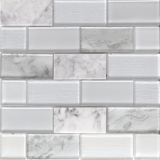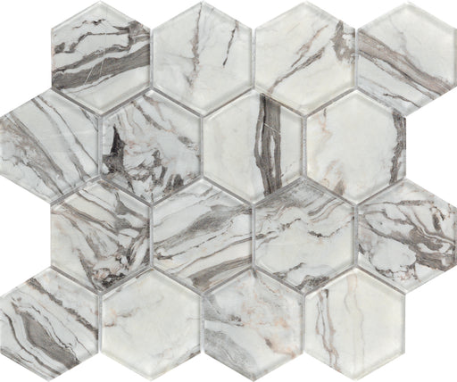 Classic Simplicity Silver Hexagon Marble Glass Mosaic Tiles
