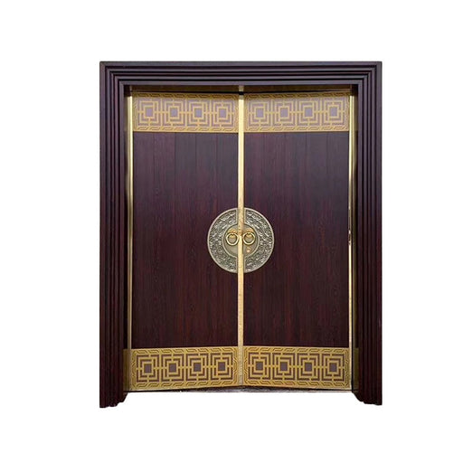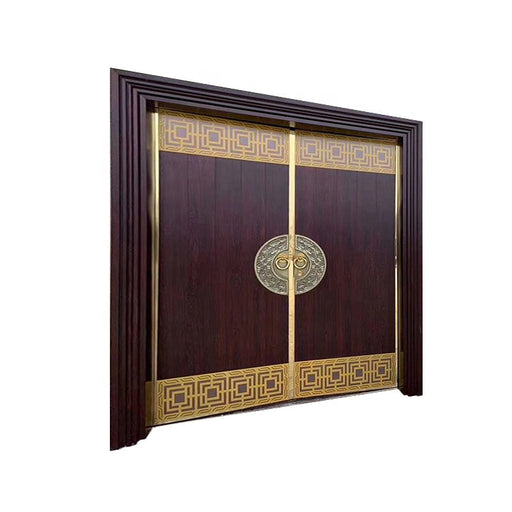 Hot Sale Swing Exterior Front Wooden Doors Double Leaf Heavy Carve Lattice Solid Main Entrance Door