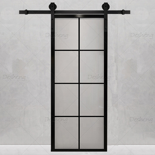 Hot Sales Aluminum Black Frame Glass Sliding Barn Door for Bathroom Interior Room Doors