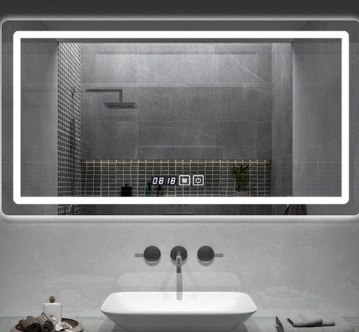 Custom Modern bathroom wall Mounted illuminated smart LED mirror touch switch smart bathroom mirror with light