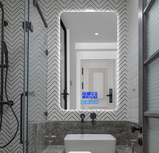 Mingda Touch Screen Toilet Fogless Shower Lighted Temperature Display Led Bathroom Mirrors