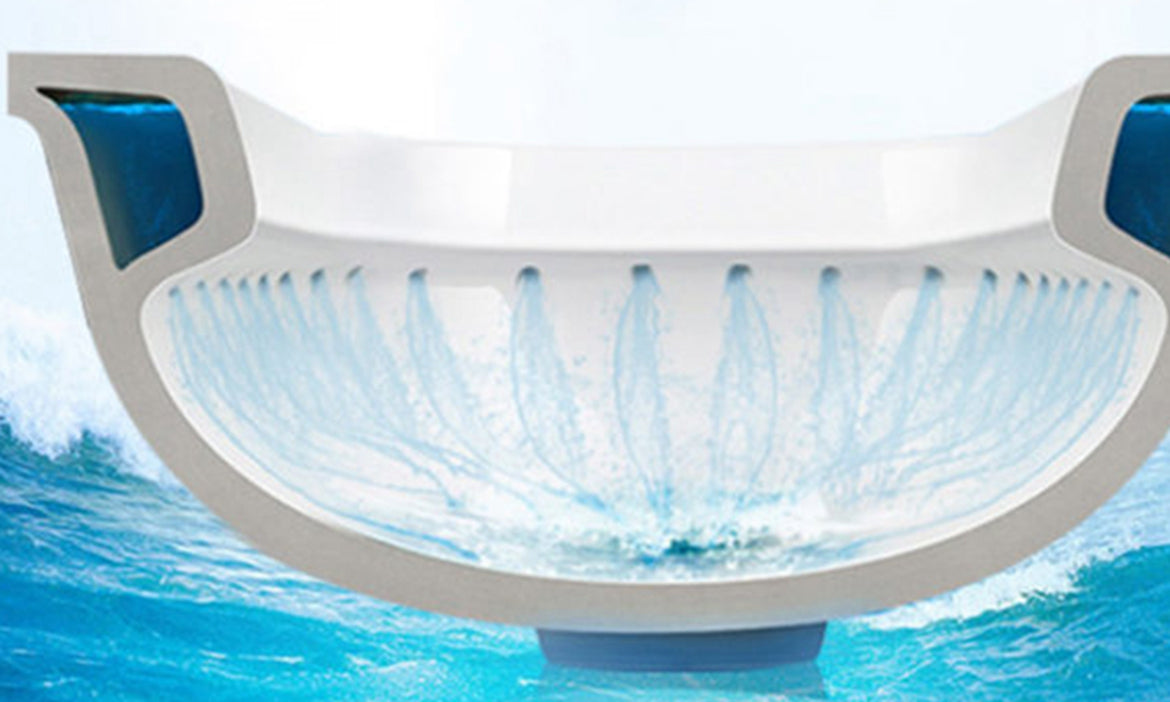 Fully glazed flush,bringing a super-quiet and powerful flush – No clogs, No leaks. Leak-proof. Highly efficient dual-flush 1.28GPF/0.8GPF,The water ejects from two small holes, flush along the inner wall of a well-designed elongated toilet an create a vortex. The vortex does 360 degrees well cleaning at all corners of the toilet bowl. Meanwhile, it creates a quieter life.
