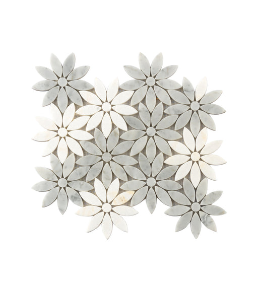 Hand Made Customized White Grey Flower Art Pattern Stone Marble Mosaic Tiles