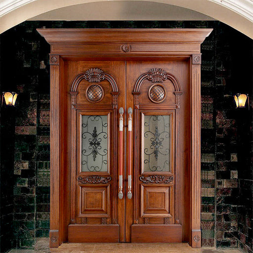 Factory supply solid wood exterior double door villa main door customized design wood glass entry doors