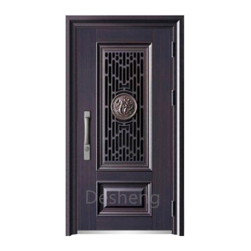 Door New Exterior Main Entry Wrought Iron Luxury Swing Security Steel Door 3D Model Design Traditional Steel Wood Manual Desheng