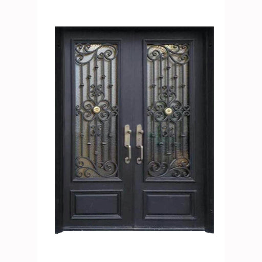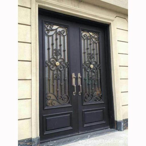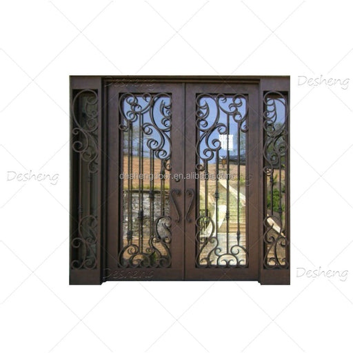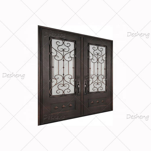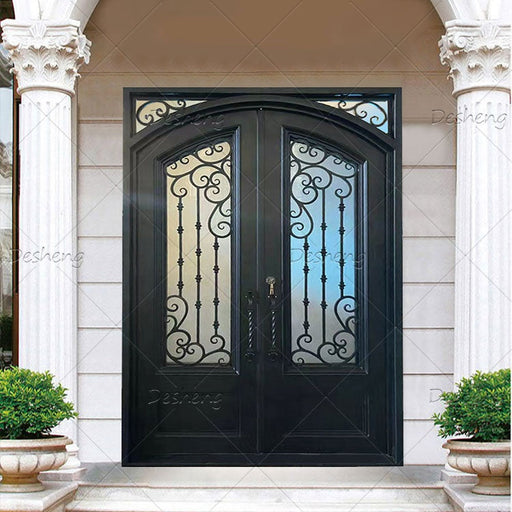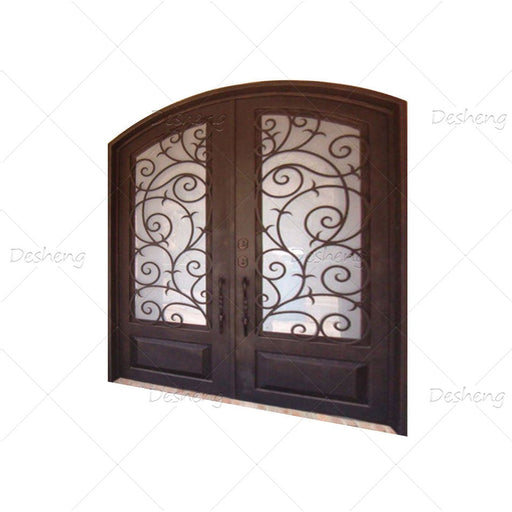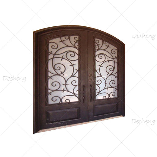 French Double Simple German Main Entrance Arch Glass Doors Grill Design Front Wrought Iron Door