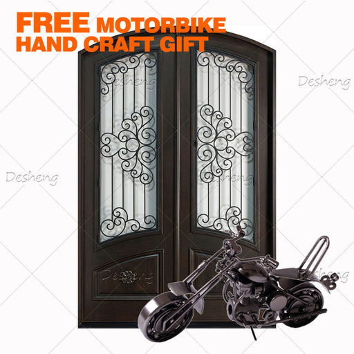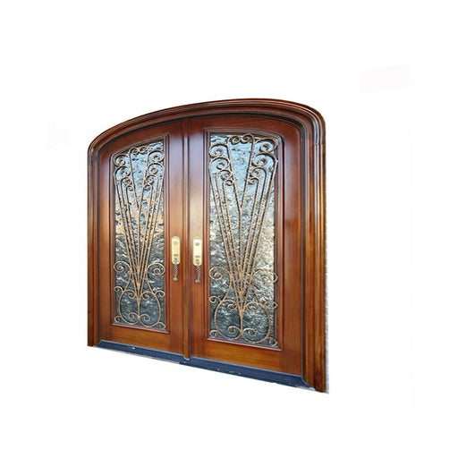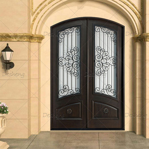 Front French Entrance Main Villa Wood Double Main Entry Glazed French Door Exterior Double Arched Iron Wood Door