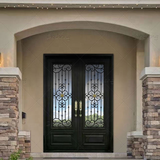 French Front House Exterior Door Design Double Main Entrance Gate Entry Wrought Iron Steel Doors