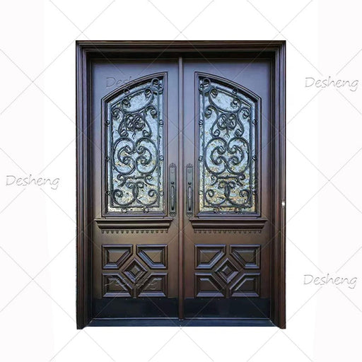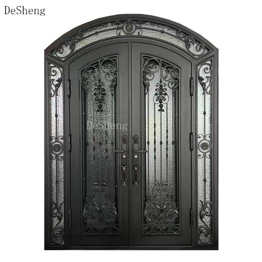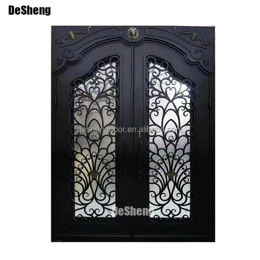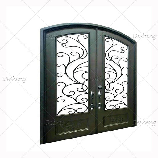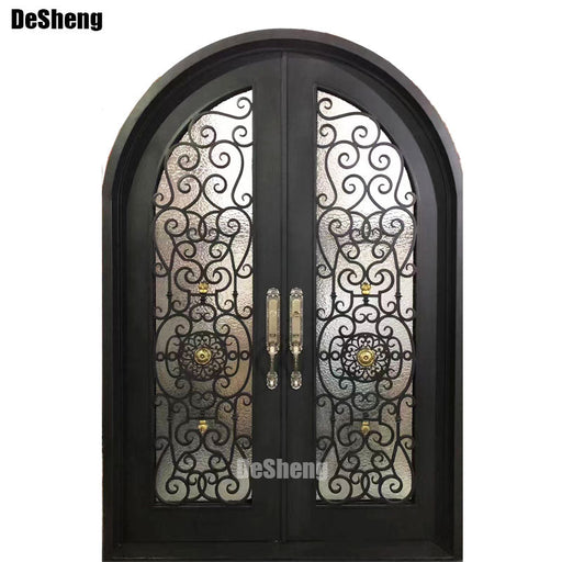 European Style Security Villa Arched Single Double Main Entrance Front Entry Wrought Iron Door House Front Door