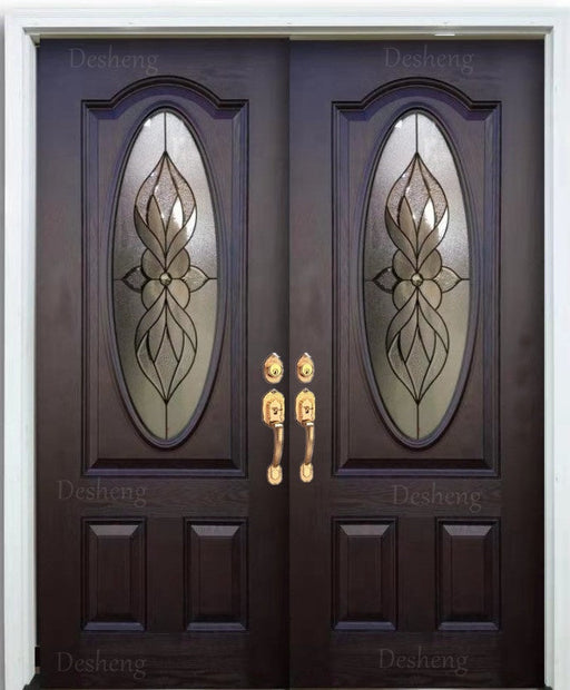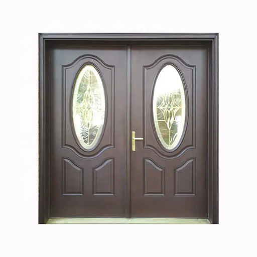 European Style Entry Frame Doors Luxury Residential Main Entrance Wooden Panel Design Glass Door