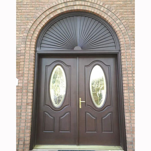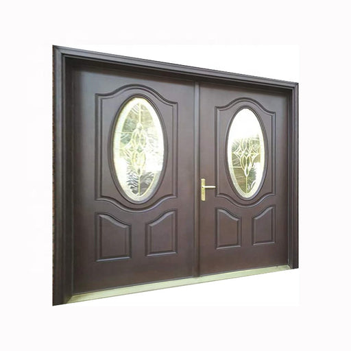 Luxury Design Exterior Mahogany Stainless Steel Gate Solid Wood Glass Double Swing Main Door Wrought Iron Entry Door