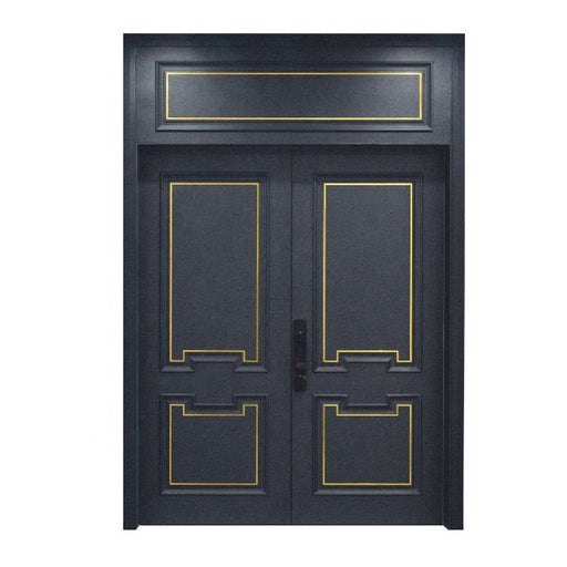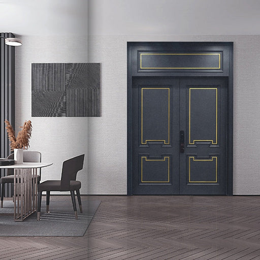Top Selling Elegant Titanium Electroplated Stainless Steel Stripes Inlaid Metallic Black Skin Feel Painting Entrance Main Door