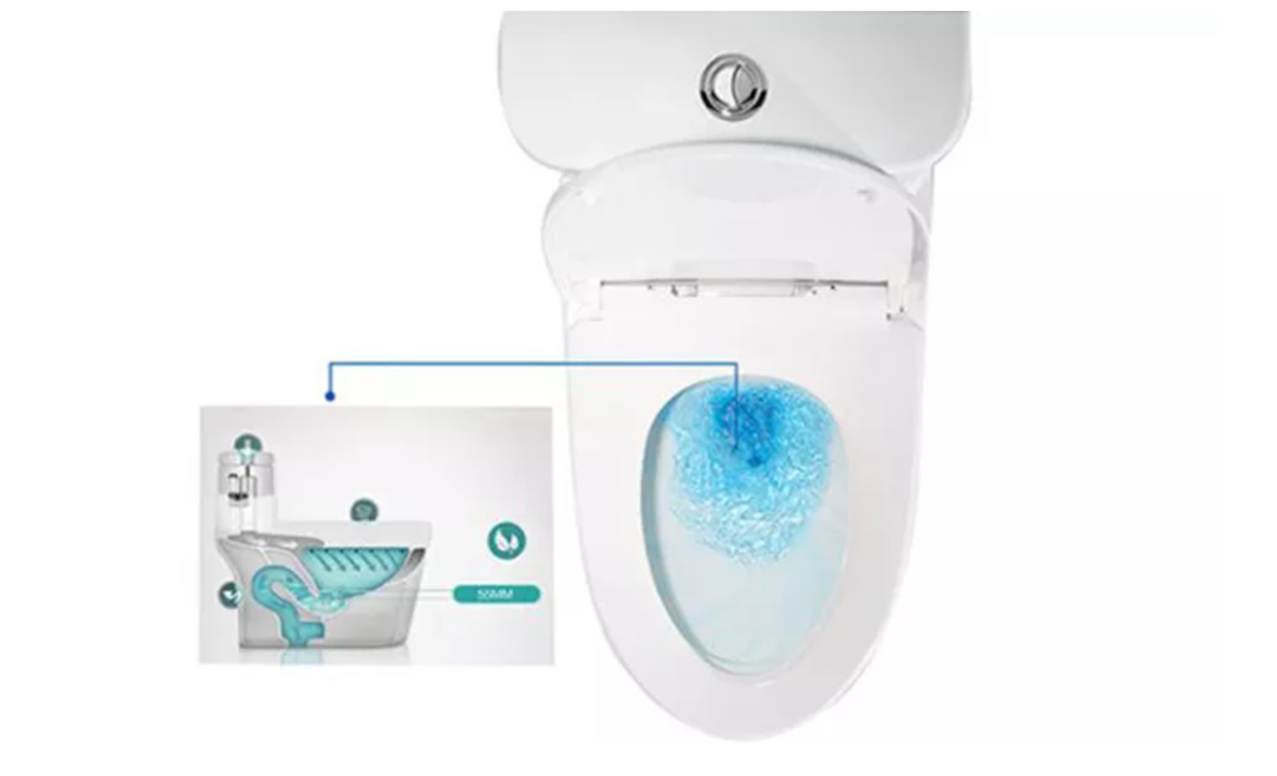 Water dialogue function with double flushing function: one-key "light flush" and one-key "recoil", allowing you to actively save water, choose 0.8GPF or higher pressure to deal with more difficult tasks. The one-piece toilet integrates the water tank and the toilet, and the self-cleaning glazed surface creates a beautiful and easy-to-clean design. High-efficiency double-flush and silent toilet flushing Water sprays from two small holes and flushes along the inner wall of the carefully designed elongated toilet to form a vortex. The vortex can clean all corners of the toilet in 360 degrees.