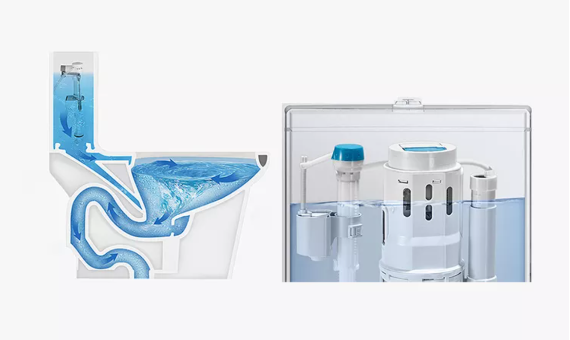 To prevent particles from adhering to the ceramic surface, easy clean glazing is applied. Making use of nanometer technology a super-smooth and extra-hard surface is created. Fully glazed flush,bringing a super-quiet and powerful flush – No clogs, No leaks. Leak-proof.