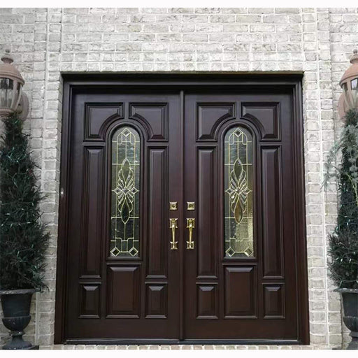 American Mahogany Doors(old) Main panels Exterior Gate Glass Front Wooden Solid double Wood Doors